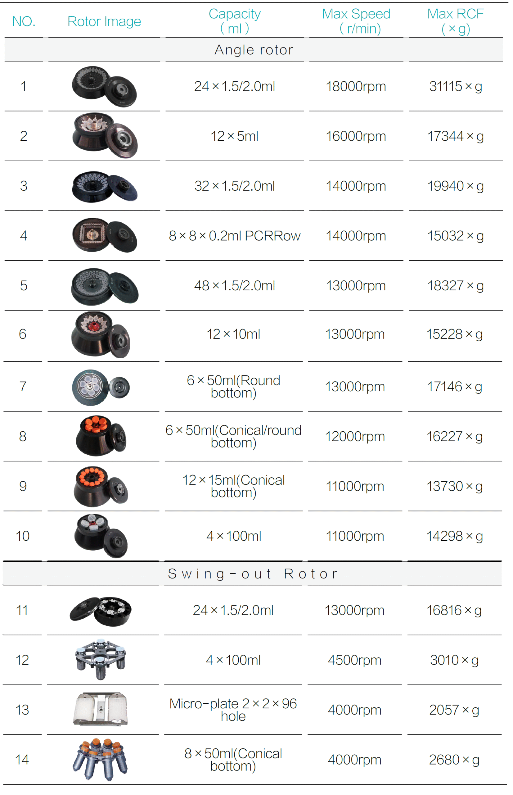 | Max. RCF | 31115 X g |