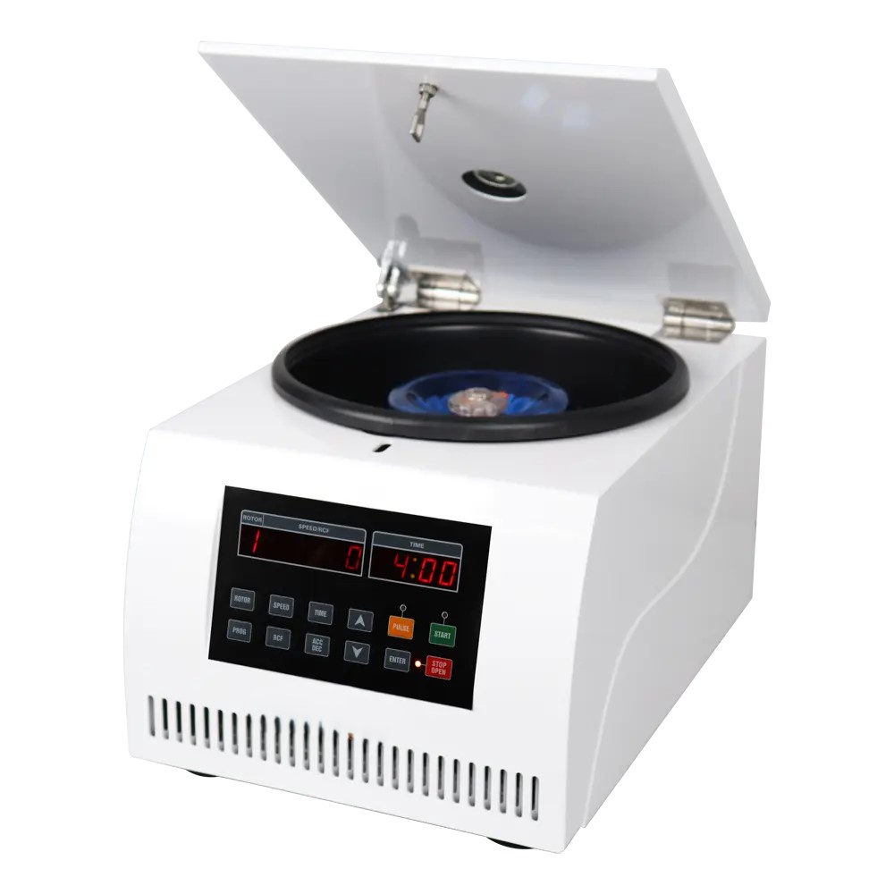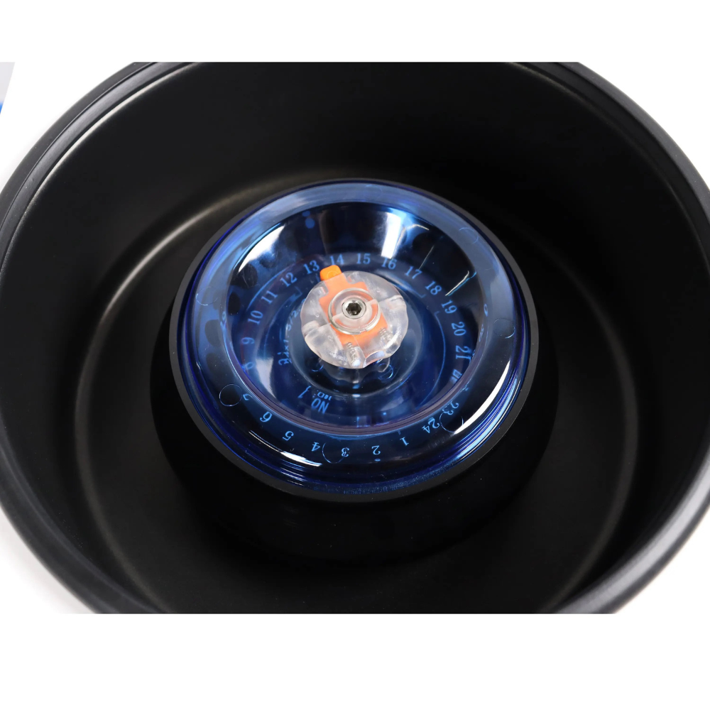 The Jindal High-Speed Microcentrifuge is designed for micro-scale laboratory applications, offering three fixed-angle rotors: 12 × 5 mL, 24 × 1.5 mL / 2.2 mL, and 32 × 0.2 mL (suitable for 4 PCR strips). Its variable frequency motor ensures smooth performance, while 12 programmable settings provide maximum flexibility.