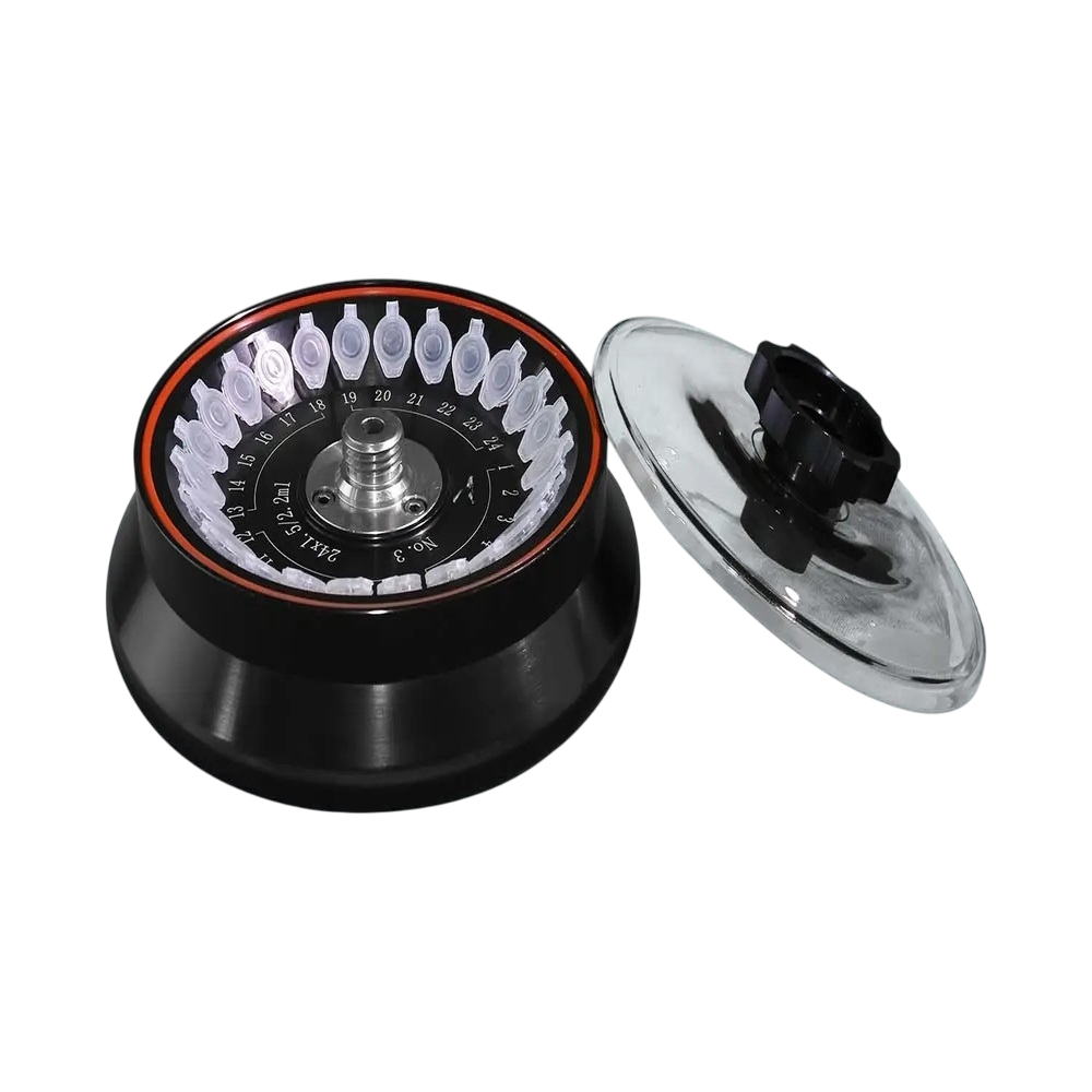 The Jindal advanced benchtop centrifuge accommodates up to 6 × 100 mL, 48 × 1.5/2.2 mL, or 8 × 50 mL conical tubes, offering versatile capacity for a wide range of laboratory applications. Equipped with an intelligent LCD touch screen for intuitive operation and precise control. For 24 × 1.5/2.2 mL tubes, an aerosol-tight rotor is available as an optional accessory to ensure maximum safety during high-speed runs.