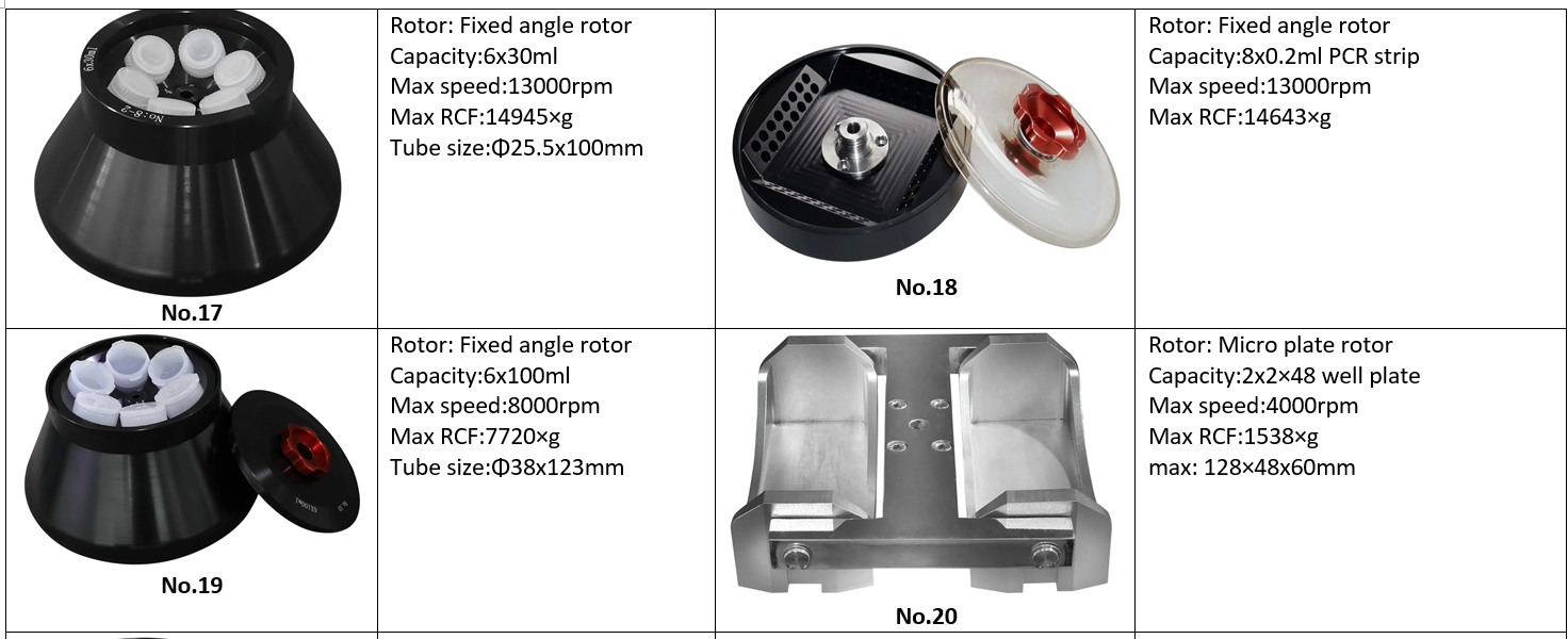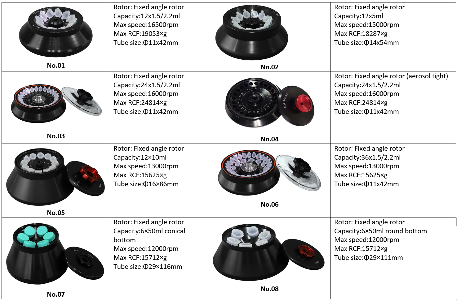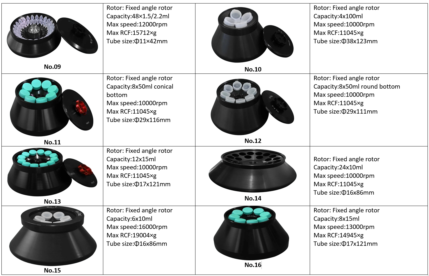 Rotor: Aluminum alloy fixed-angle rotor; Steel swing-out rotor