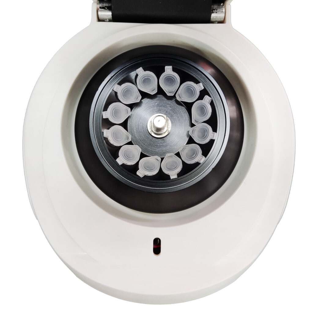 The Jindal Micro High-Speed Centrifuge is equipped with a 12 × 1.5/2.2 mL fixed-angle rotor (with 0.2/0.5 mL adaptors). Featuring a compact design, simple operation, high rotational speed, low noise, and rapid acceleration, it delivers efficient and reliable performance for daily laboratory use.