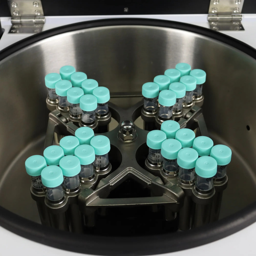 The Jindal Benchtop Centrifuge is designed for a wide range of general laboratory applications. It is compatible with 15 ml, 50 ml, and 100 ml tubes, offering flexibility for various sample volumes. The centrifuge can accommodate up to 32 tubes of 15 ml at a time, ensuring efficient sample processing.