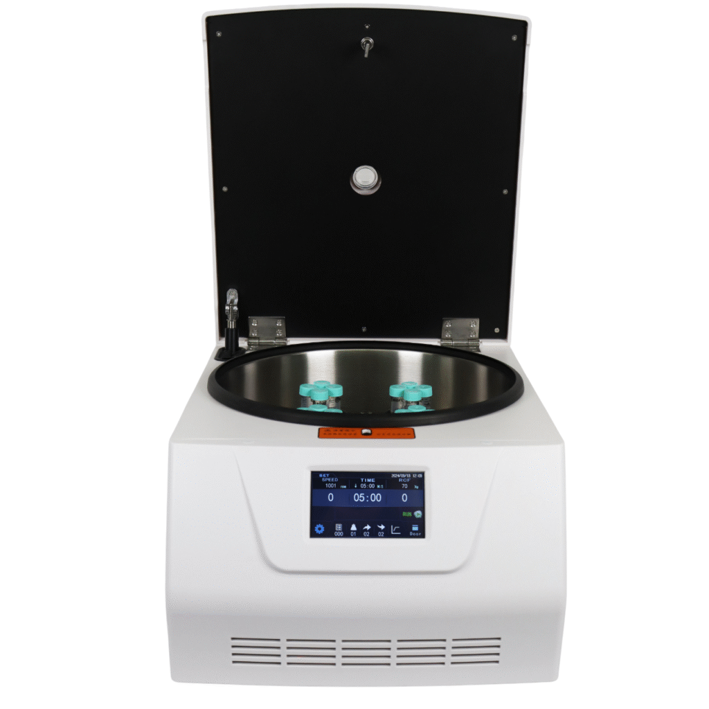 The Jindal offers exceptional user comfort and flexibility with a choice of six rotors, including popular swing-out rotors for 15 ml and 50 ml tubes. It features an intelligent LCD touchscreen that allows easy operation even while wearing gloves.