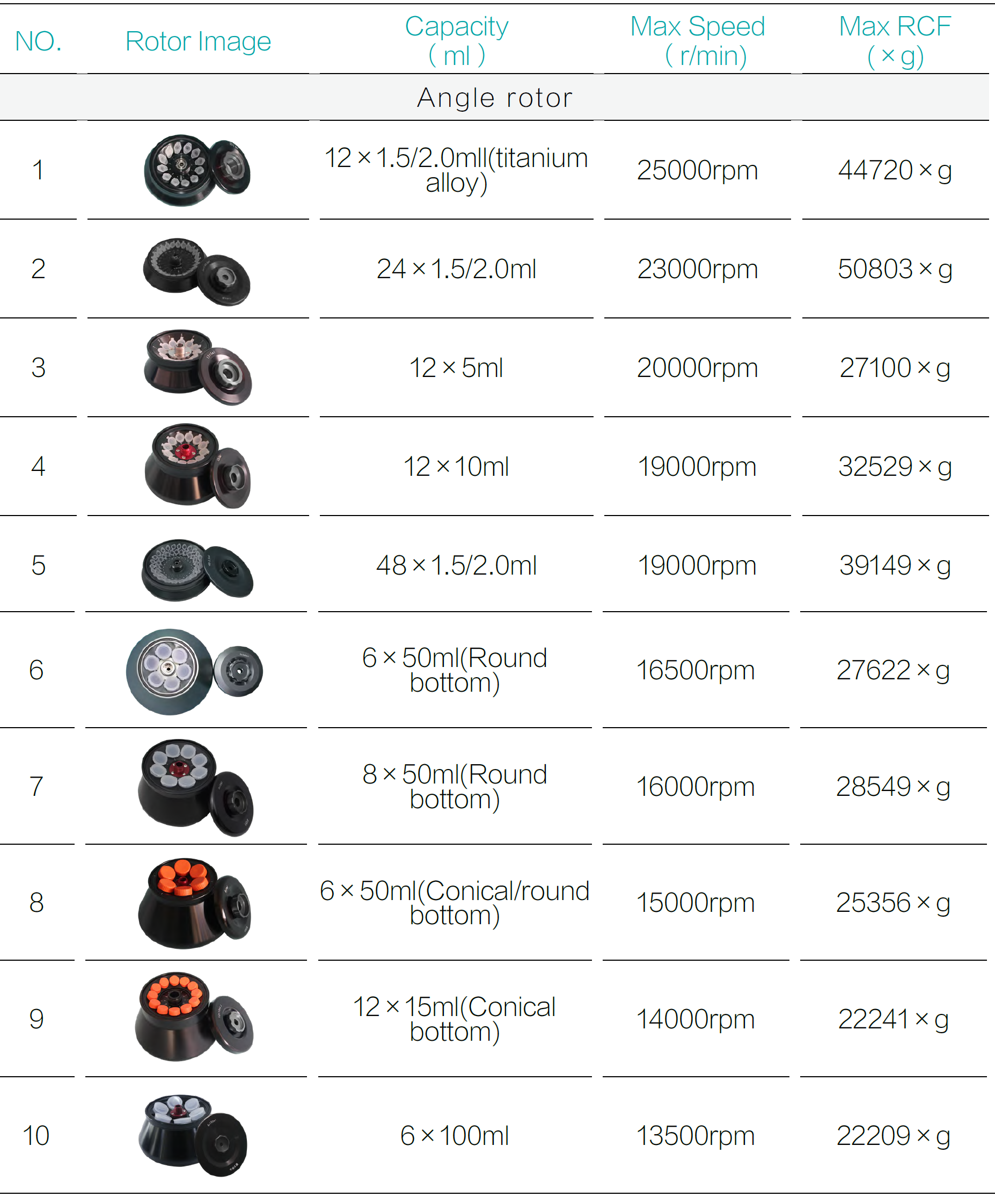 | Max. RCF | 50803 X g |